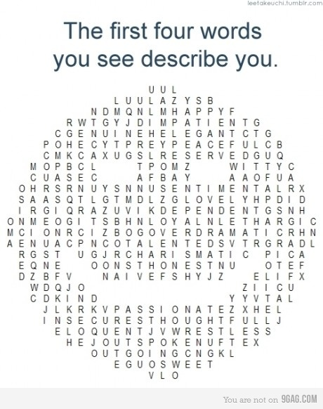 Okay, well here's my fun for the New Year. Follow the directions and leave your four words in the comment section. I would love to hear what four words describes you. My words were SWEET (lol-honestly the very first word I saw), SINCERE, ELEGANT AND PEACEFUL! I would definitely say that this is truly who I am or who I aspire to be. :-)