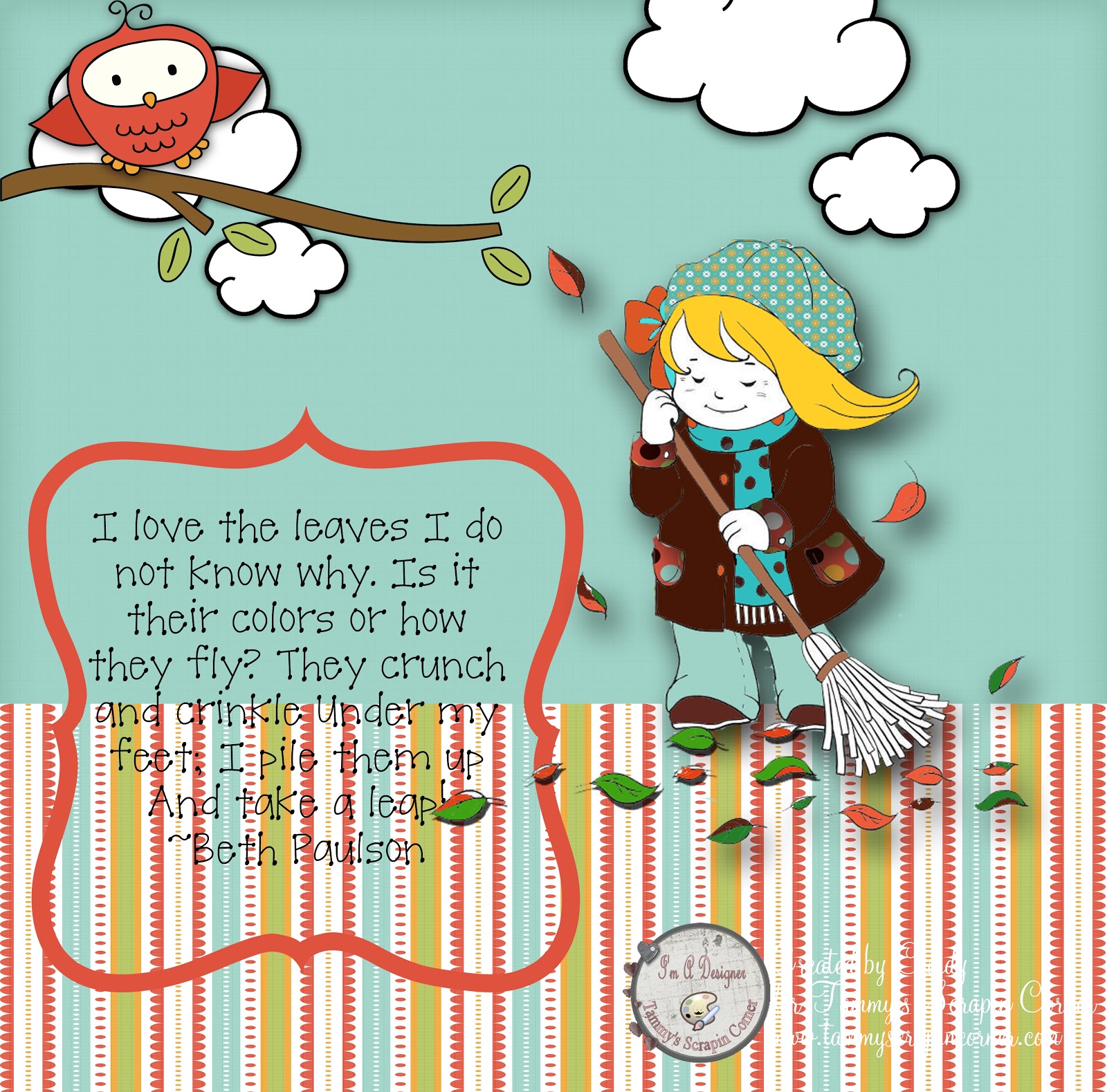 This week our generous sponsors are Digi Darla and Bugaboo Stamps. I chose to use Digi Darla "Sweeping Fall Leaves" image for my creation.